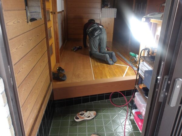 玄関框の交換・・・廊下・広縁のフローリング貼り