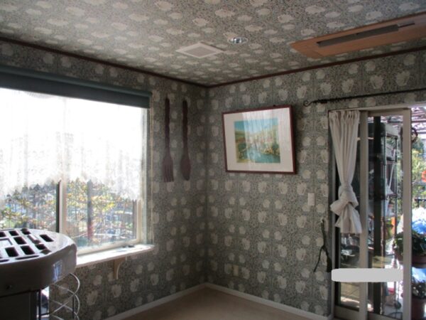 エアコンカバーは木目調・・・クロスも奥様チョイス